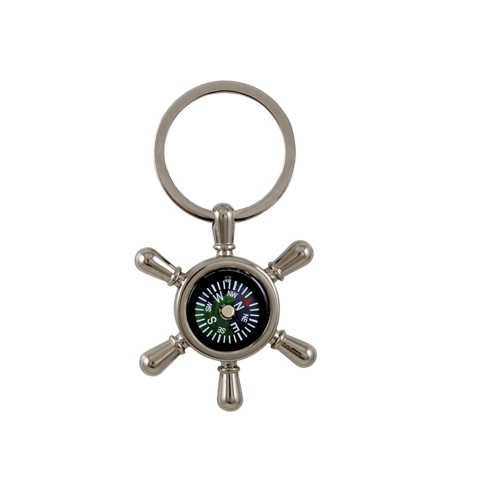Brelok w kształcie koła sternika z wbudowaną imitacją kompasu, wykonany z metalu z elementami z tworzywa. Z tyłu posiada gładką, lustrzaną powierzchnię na której można wykonać grawer. Długość breloka 8 cm, średnica zawieszki 5 cm. Brelok pakowany w ozdobne, czarne, flokowane wewnątrz pudełeczko.