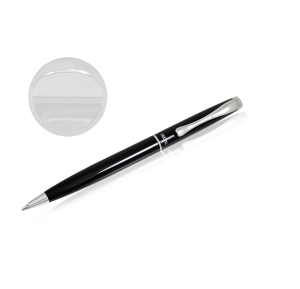 Elegancki długopis "Edward" w kolorze czarnym i okuciami stalowymi z wykręcanym wkładem. Długopis zapakowany w ozdobne pudełko. Eleganckie wzornictwo, doskonałe materiały, wzorowe wykonanie wyróżniają markę Regal.