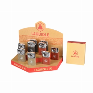 Zapalniczka marki Laguiole. Klasyczna zapalniczka żarowa z dyszą również do cygar. Płomień barwiony na niebiesko. Wymiary: 6,7 x 3,4 x 1,3 cm. Zapakowana w eleganckie, ekologiczne etui.